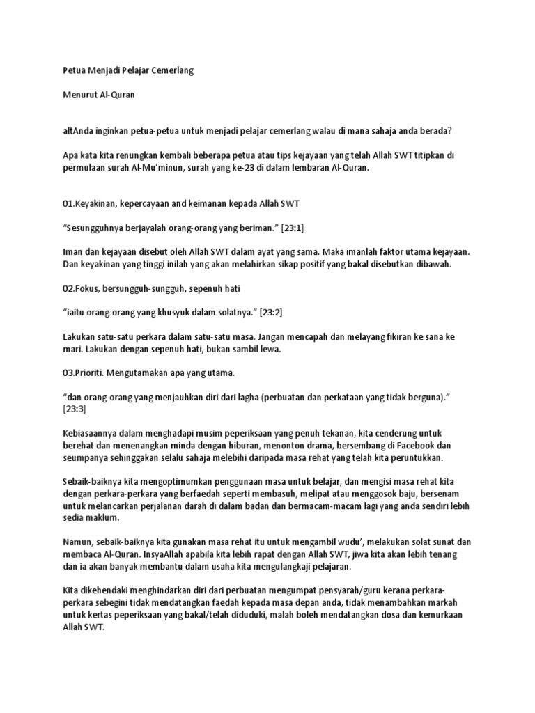 Surat Tidak Rasmi Cara Cara Menjadi Pelajar Cemerlang Letter 7saudara Com